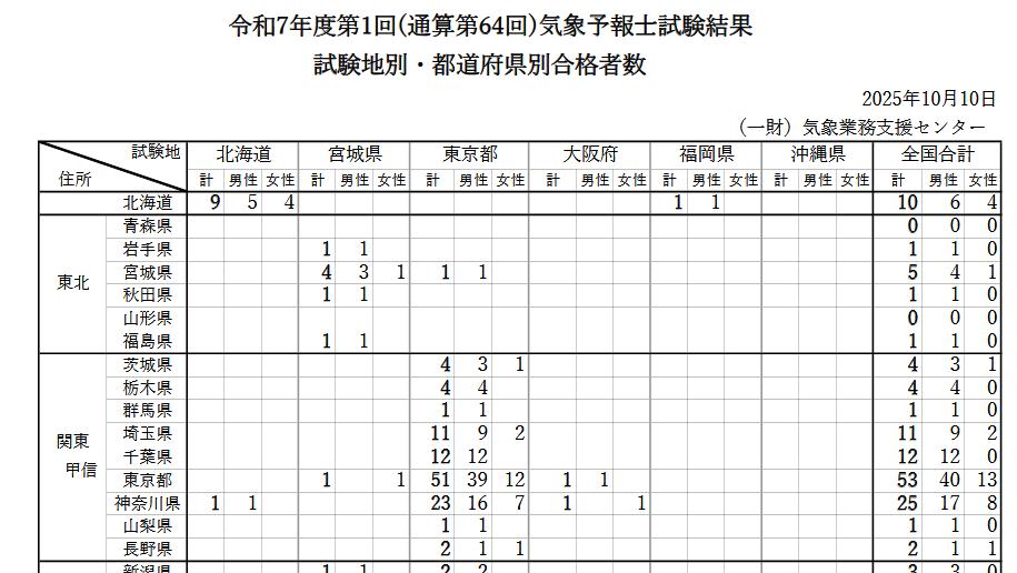 関東甲信・神奈川県→北海道なのが私一人(受験者数は3人だったはず)