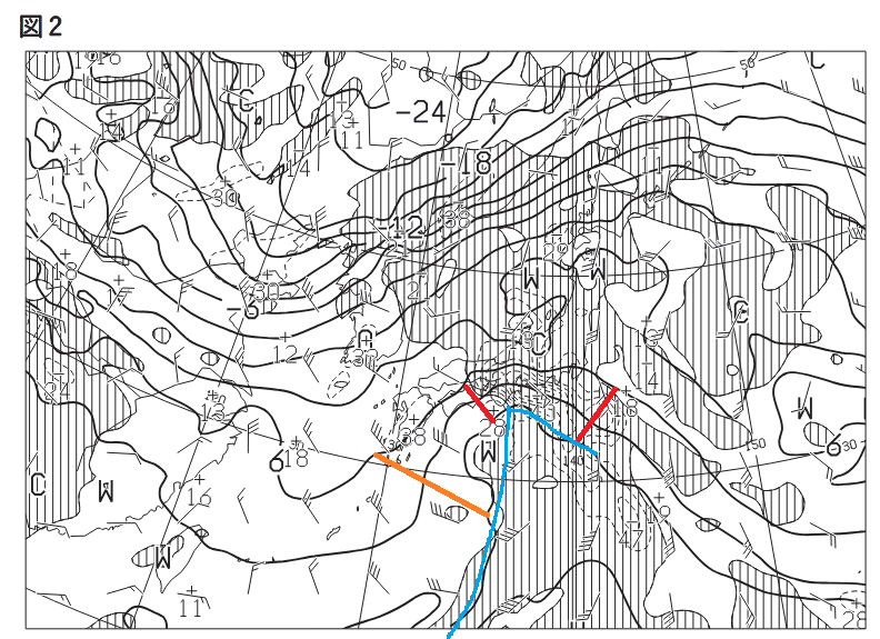 ということは、正解において見ている寒冷前線側の温度傾度というのは、私が引いたオレンジ色のところを言っているのでしょうか??