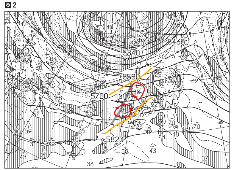 今回の問題は、等高度線ではトラフを判断できない、特殊な問題です。